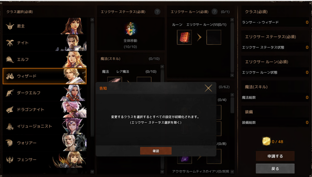 ・申請するを押すと、サーバー接続が終了しクラスチェンジ処理が実行される。