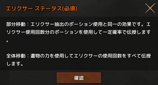 | エリクサー全体移動 | 必須 | 無料 | エリクサーステータスを維持 |